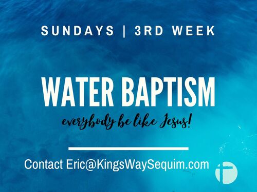 Have you accepted Jesus Christ as your Lord and Savior? Now is the time to be water baptized and publicly declare your commitment to follow Jesus! More info... Facilitator: Pastor Eric